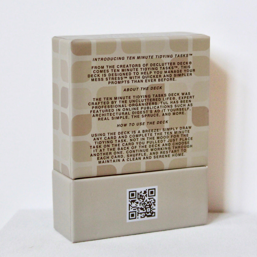 From the creators of Declutter Deck®, Ten Minute Tidying Tasks™ is designed to help you manage Mess Stress™ with quick, simple prompts that make organization feel doable—even on your busiest days. This deck turns tidying into short, achievable actions that fit naturally into real life, proving that meaningful organization doesn’t require hours of effort.